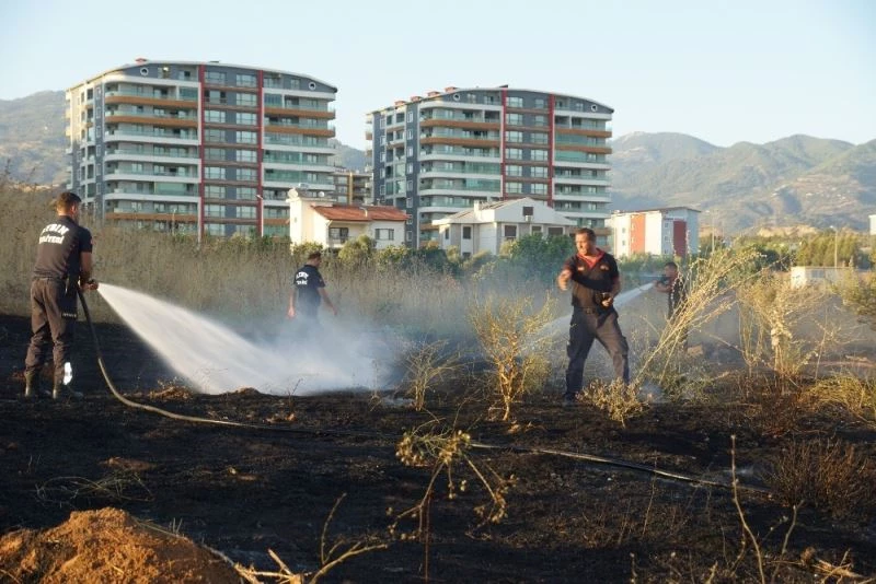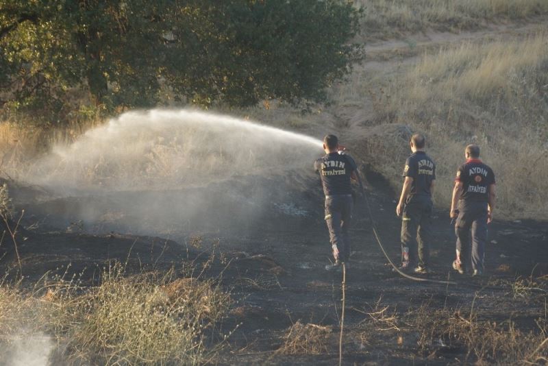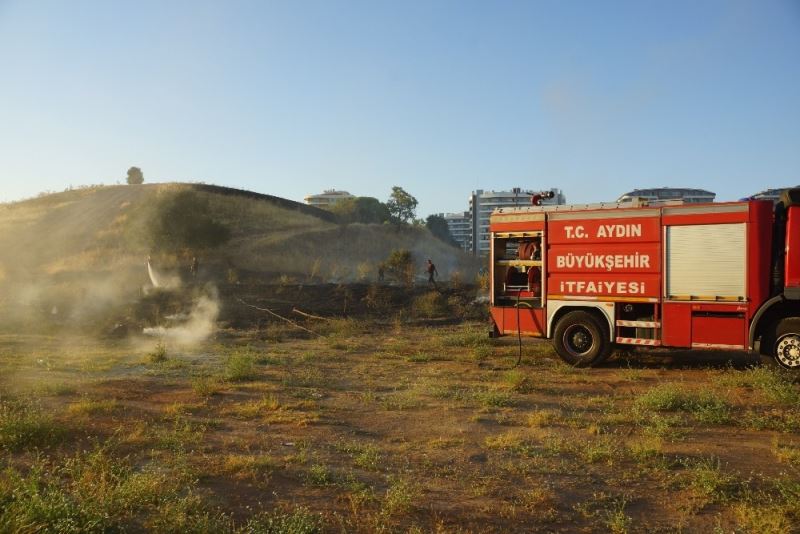 Aydın’ın Efeler ilçesindeki otluk alandaki yangın çevredeki evlere ulaşmadan söndürüldü.