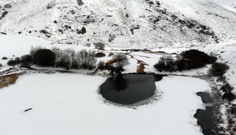 Kar yağışıyla birlikte beyaza bürünen Otlukbeli Gölünü ziyaret eden Adem Aktürk, Otlukbeli’ye 7 kilometre uzaklıkta olan göl hakkında şu bilgileri verdi: