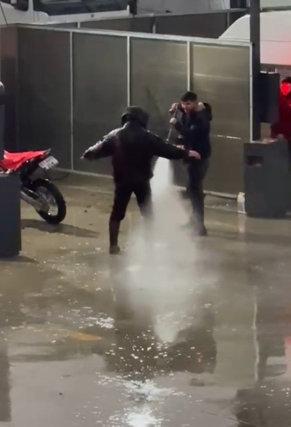Edinilen bilgilere göre, soğuk havaya aldırış etmeyen vatandaş, benzin istasyonu içerisinde bulunan oto yıkama alanına girerek, arkadaşı tarafından tazyikli suyla kendini yıkattı. Alışılmışın dışında yaşanan bu anlar çevrede bulunanların dikkatini çekti. Yaşanan ilginç olay, bir başka vatandaş tarafından cep telefonu kamerasıyla saniye saniye kaydedildi. Paylaşılan görüntüler kısa sürede sosyal medyada yayıldı. Oto yıkama bölümünde kendini yıkatan vatandaşın rahat tavırları dikkat çekerken, çevredeki vatandaşlar olayı şaşkın bakışlarla izledi. Görüntüler, bölgede günün en çok konuşulan ilginç olaylarından biri haline geldi.