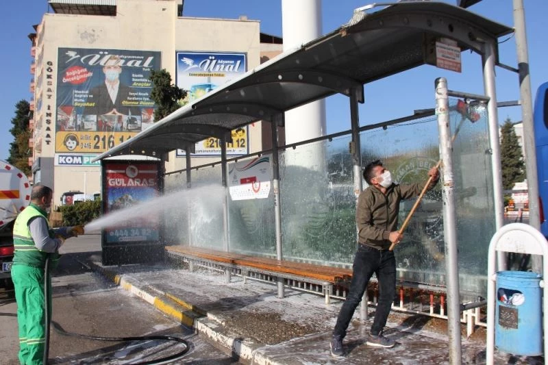 Belediye Temizlik İşleri Müdürü Mahmut Yıldırım, “Sokağa çıkma kısıtlamasını fırsat bilerek, otobüs durakları ve insanlarımızın yoğun olduğu bölgeleri köpüklü suyla yıkamaya çalışıyoruz. Özellikle bu gün bir aracımızı otobüs duraklarına ayrıdır. Diğer ekiplerimiz ise şehir merkezindeki cadde ve sokakları yıkıyor” dedi.