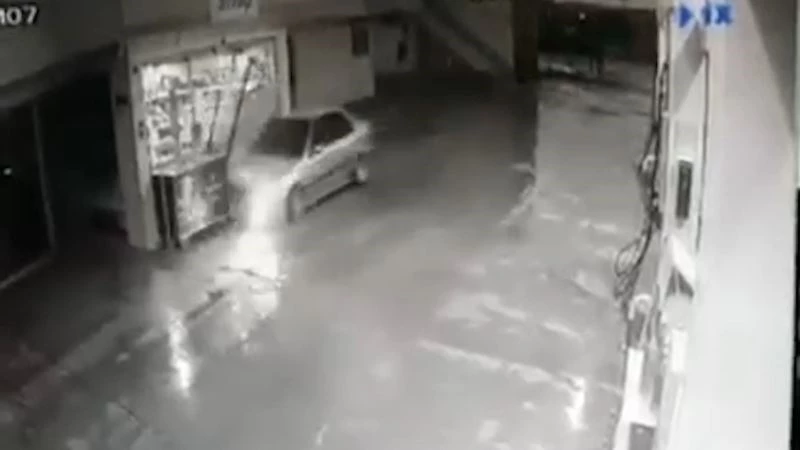 Otomobil akaryakıt istasyonundaki markete böyle daldı