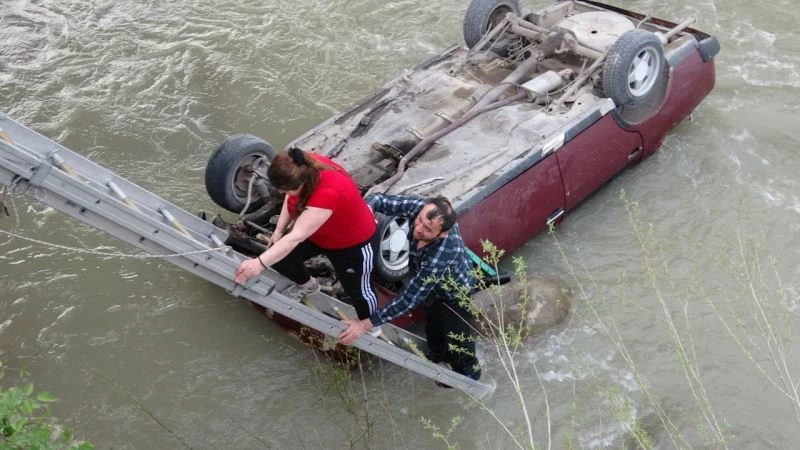 Karabük’te kontrolden çıkan otomobil Araç Çayı’na uçtu. Bir bölümü suya gömülen otomobilde hafif yaralanan 2 kişi boğulmaktan sonra kurtularak merdiven yardımıyla çaydan çıkarıldı.