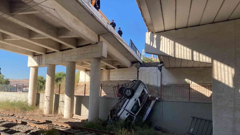 Sivas’ta meydana gelen kazada otomobil yaklaşık 6 metre yüksekliğindeki köprünün üzerinden demir yoluna uçtu, kazada 3 kişi yaralandı.