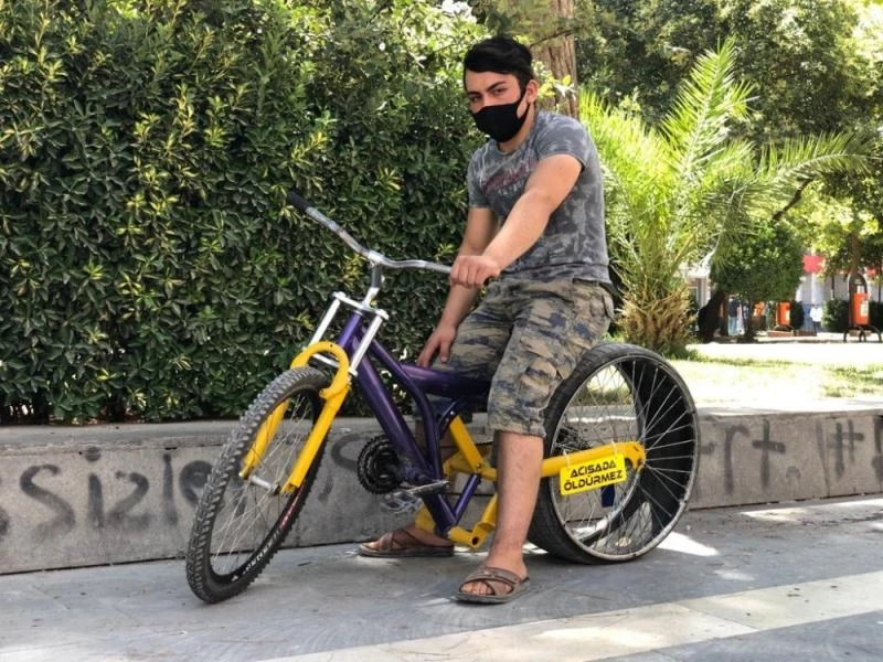 Mardin’in Kızıltepe ilçesinde yaşayan Nurullah Uğur, bisikletine otomobil lastiği taktı. Uğur’un bisikletini gören çevredeki vatandaşlar, şaşkınlıklarını gizleyemedi.