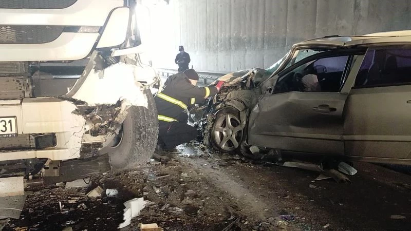 Otomobil önce kağıt toplayıcısına sonra tıra çarptı