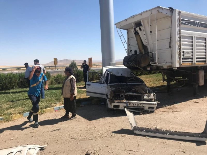 Otomobil park halindeki tır dorsesine çarptı: 1 yaralı