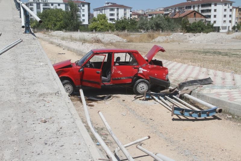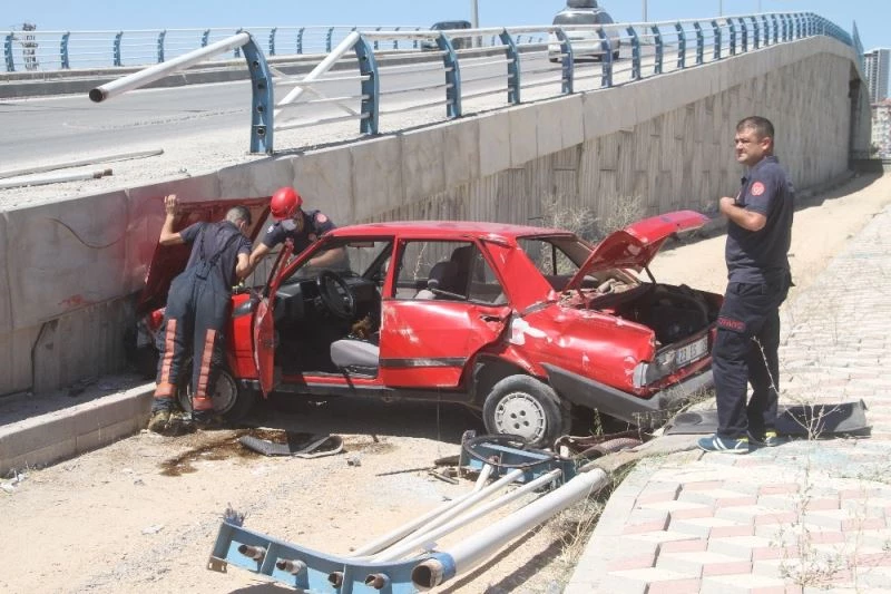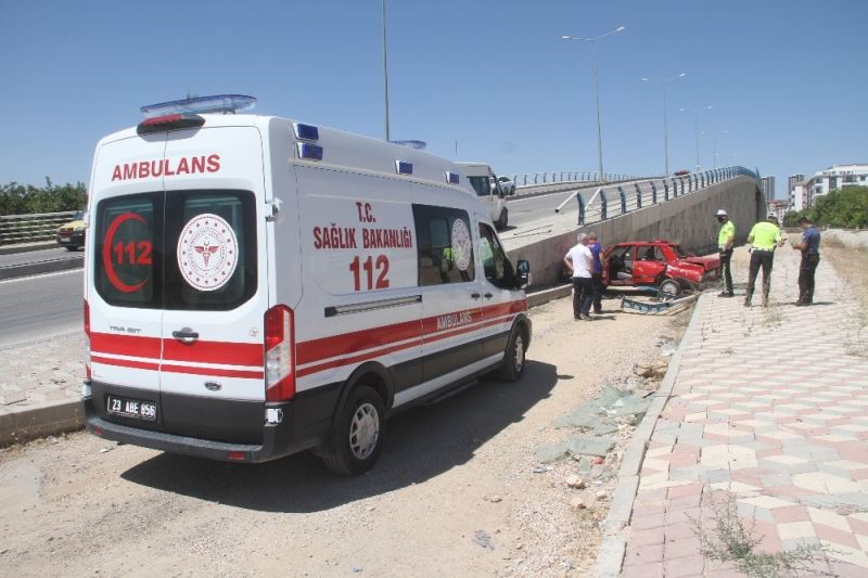 Elazığ’da sürücüsünün direksiyon hakimiyetini kaybettiği otomobil üst geçitten aşağı uçtu, kazada sürücü yaralandı.