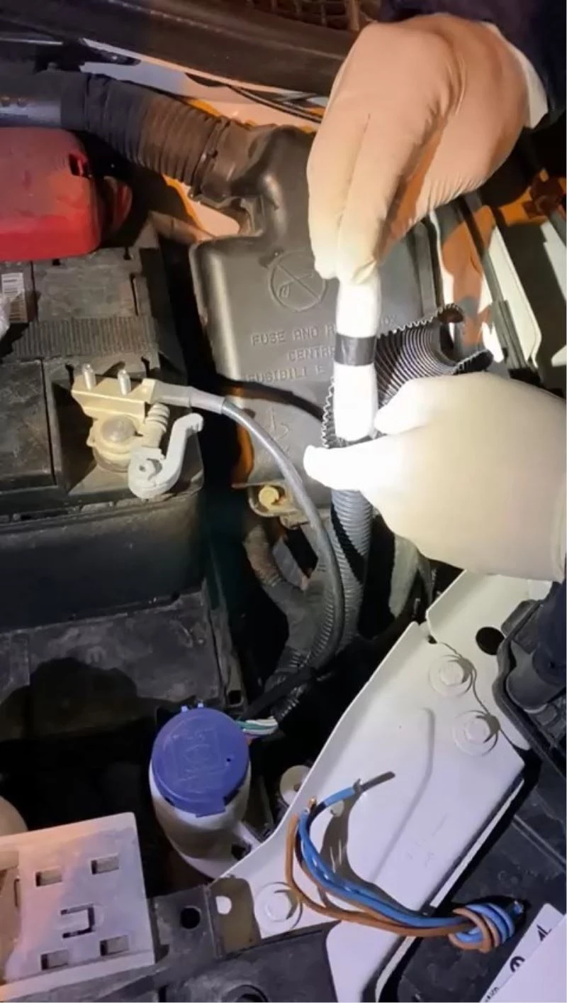 Otomobilde narkotik köpeği ile yapılan aramada köpek koku aldı. Bunun üzerine ekipler arabada detaylı inceleme yaptı. Motor kısmında bulunan bir borunun ucundaki kabloları çekildiğinde bunun düzenek olduğu fark edildi.