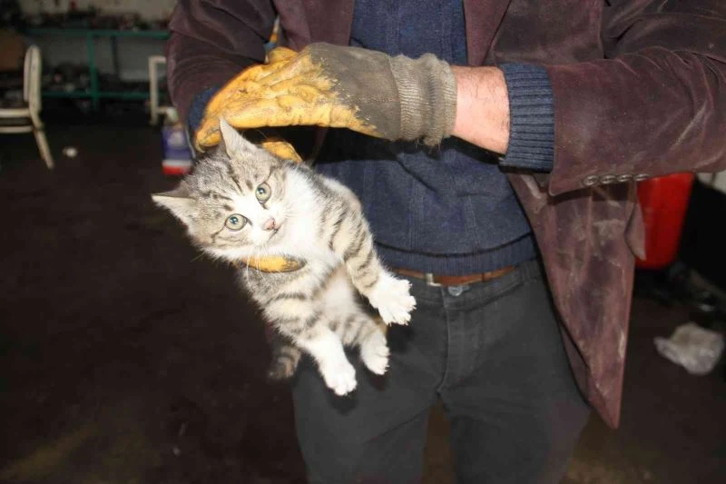Konya’nın Beyşehir ilçesinde park halindeki bir otomobilin motor kısmına giren yavru kedi, sanayideki bir iş yerinde gerçekleştirilen çalışma sonucu araçtan çıkarıldı. Kurtarıldıktan sonra gazetecilerin aracının motor kısmına giren kedi ikinci kez bulunduğu yerden kurtarıldı.