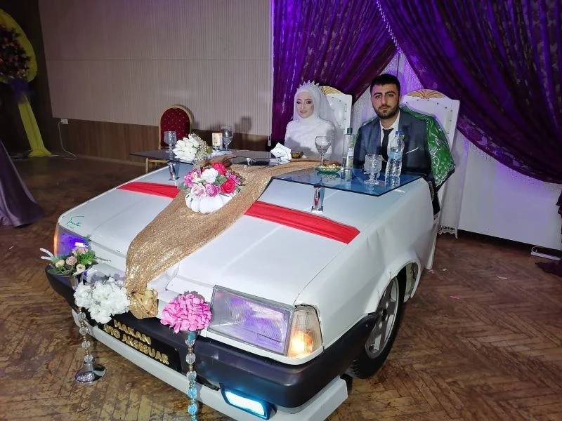 Damat Ahmet Hakan Macit ise “Oto aksesuar işi yapmaktayım işim icabı ve de marka sevdamdan dolayı hurdadan aldığım bir arabanın ön tarafını keserek bir aylık bir çalışmanın ardından masa haline getirdim. Kendi düğünümde eşime sürpriz yaparak gelin damat masası olarak eşime sürpriz yapıp düğün salonuna getirdim çok ta güzel oldu misafirlerimizde çok beğendiler” dedi.