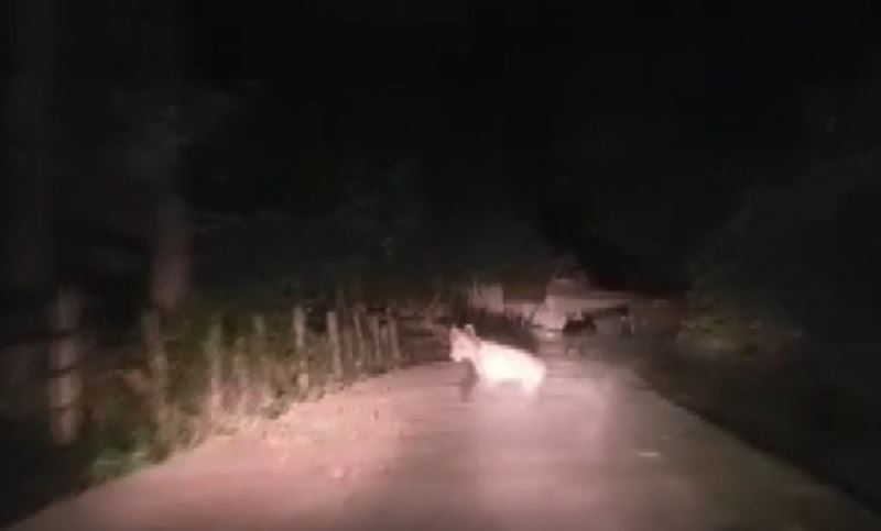 Cep telefonu ile video kaydı alırken koşan yavru ayıları araçla takip eden şahıslar, ayıların köye girmesi sonucu büyük korku ve panik yaşadı. Yavru ayılar, köy içindeki bir evin bahçesine girerek gözden kayboldu.