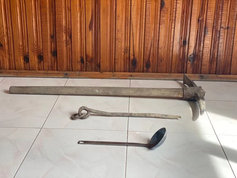 Yapılan arama sonucunda evin oturma odası bölümünde yaklaşık 1 metre derinliğinde çukur kazdıkları belirlendi. Odada 1 adet kazma, 1 adet murç diye tabir edilen alet ve 1 adet çömçe diye tabir edilen malzeme ele geçirildi.