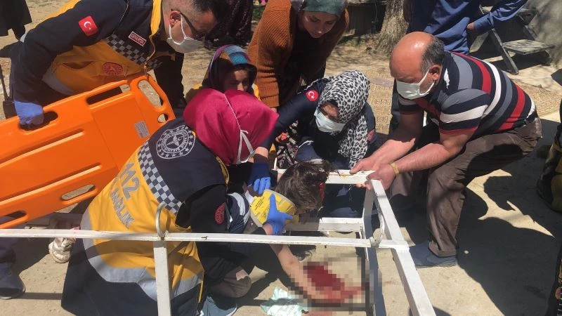 Oyun oynarken üzerine demir askılık düştü, kanca kafasına saplandı