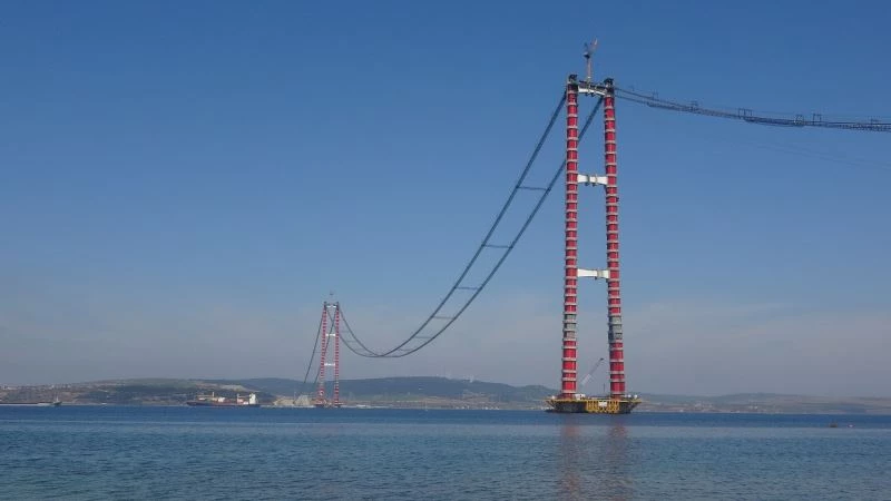 Dünyanın en büyük asma köprüsü unvanına da sahip olan köprünün ayakları 318 metrelik yüksekliğiyle 18 Mart Çanakkale Deniz Zaferi’ni simgeliyor. Cumhurbaşkanı Recep Tayyip Erdoğan tarafından 18 Mart 2017’de temeli atılan ve Çanakkale’nin Lapseki ilçesine bağlı Şekerkaya ile Gelibolu’nun Sütlüce mevkii arasında yapımı süren 1915 Çanakkale Köprüsü’nün ayakları 16 Mayıs Cumartesi günü Cumhurbaşkanı Recep Tayyip Erdoğan’ın videokonferansla katıldığı törenle tamamlanmış ve 32 bloktan oluşan köprünün ayak yüksekliği 318 metreye ulaşmıştı.