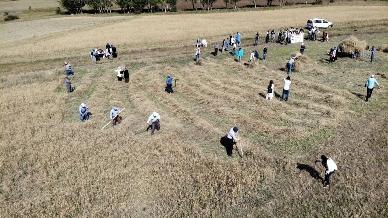 Renkli görüntülere sahne olan festivalde katılımcılar buğday tarlasında tırpan sallayarak, halay çekip, horon teperek mutlu oldu.