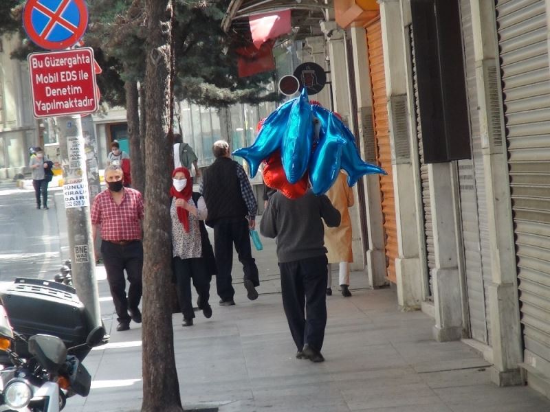 Kendisi gibi 65 yaş üzeri olan vatandaşlara balon satarak ekmek parasını kazanmak için sokağa çıkan 71 yaşındaki seyyar satıcı elindeki balonlarla siftah yapamadan evinin yolunu tuttu.