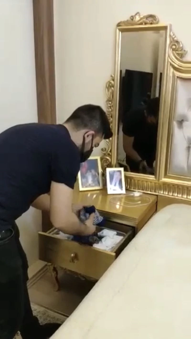 Yapılan aramalarda polis ekipleri yatağın altına saklanmış tabanca ve çok sayıda mermi ele geçirdi. Daha sonra evdeki başka alanları da arayan ekipler, bir çorabın içerisine saklanmış başka bir tabanca daha ele geçirerek Nihat O.’yu gözaltına alıp emniyete götürdü. Polisi bile şaşırtan olayda evde yapılan aramalar ise kameralara yansıdı.