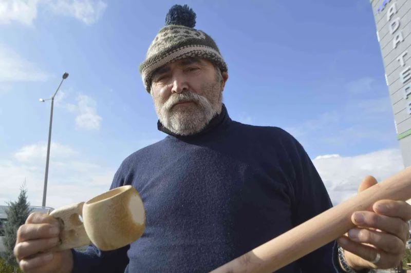 Kütahya’nın Tavşanlı ilçesinde yaşayan Ramazan Yılmaz, yaklaşık 40 yıldan bu yana ağaç kökleri ve atılmış, kurumuş ağaçlardan oymacılık sanatı ile ahşap bardak, kaşık, pişirgeç veya oklava haline dönüştürüyor.