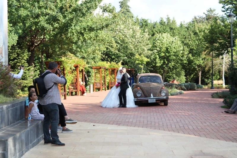 Gaziantep’te yeni evlenecek çiftler, düğün fotoğraflarını bine yakın çiçek ve bitki çeşidi bulunan Botanik Bahçesi’nde çektiriyor.