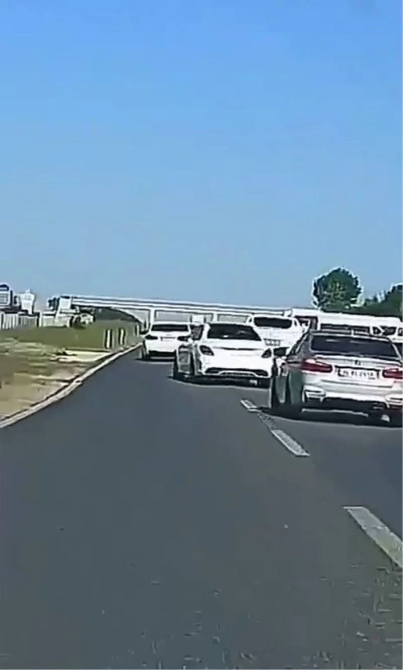 E-5 karayolu Selimpaşa mevkisindeki bir düğün konvoyunda 7 araç, aniden hızla şerit değiştirip fren yaparak trafiği tehlikeye düşürdü. Birbirlerine zaman zaman “makas” atan sürücüler, arkadaki sürücülerin geçişlerini engelledi.