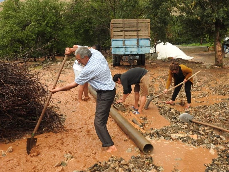 Köy sakinleri de ev, bahçe, ahırlara su dolmaması için kazma, kürekleri ellerine alarak setler oluşturdu.