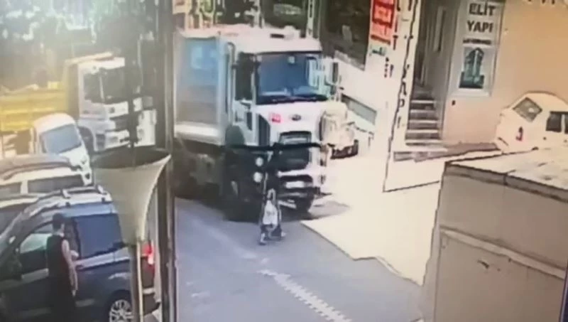 (Özel) Esenyurt’ta çöp kamyonu altında kalan anne ve oğlunun inanılmaz kurtuluşu kamerada