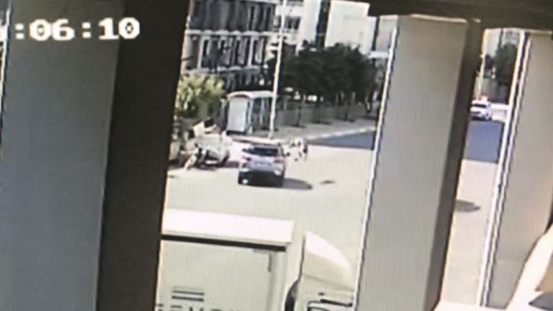 Öte yandan kaza, cadde üzerinde bulanan bir kağıt firmasının güvenlik kamerasınca anbean kaydedildi.