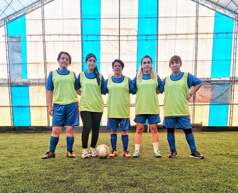 Ev hanımları arasında kıran kırana halı saha futbol maçı
