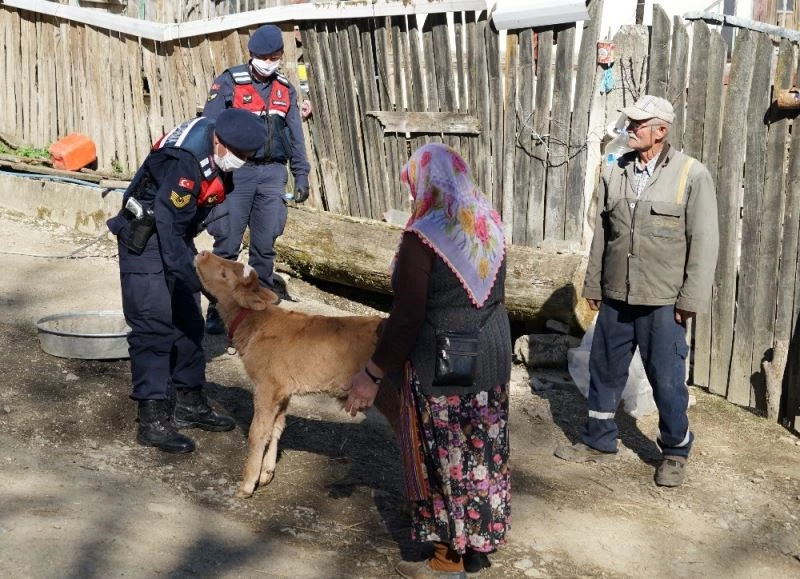 Kastamonu’da 10 günlük buzağısı hastalanan ve yeni tip korona virüs (Covid-19) tedbirleri kapsamında sokağa çıkamayan yaşlı çiftin yardımına Azdavay İlçe Jandarma Komutanlığı ekipleri yetişti. Hastalanan ve ishal olan 10 günlük buzağı, jandarma ekiplerince evden çıkamayan yaşlı çiftten alınarak veteriner hekimde tedavisi yapıldıktan sonra tekrar aileye geri teslim edildi.