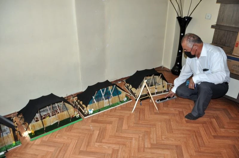 Yüksekova ilçenin Esentepe Mahallesi’nde ikamet eden 64 yaşındaki banka emeklisi Şemsettin Demir, pandemi döneminde yaşanan kısıtlama nedeniyle evinin üst katını atölyeye çevirdi. Burada tarihi yaşatmak için kıl çadırının yanı tarihi eserler yapmaya başladı. Demir, atölyesinde eski zamanlarda kullanılan kıl çadır ve çeşitli tarım araçlarının maketlerini yaparak, kendisine hobi kazandırdı. Zorlu süreci evde geçiren Demir, boş zamanlarını eski zamanlarda kullanılan kıl çadır ve tarım alanlarında kullanılan çeşitli araçlarının maketlerini yapmasıyla, çocukluğu ile gençlik zamanlarında gördüğü araç ve gereçleri bugüne taşımasıyla günün teknolojisine meydana okuyor.