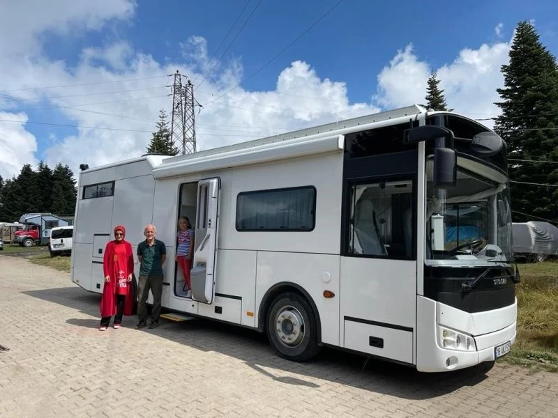 Ailesinin rahat etmesi için geniş bir araç düşündüklerini belirten İsa Karahan, “Sakarya’dan halk otobüsünden çıkan bir araç aldık. Şasenin üzerine, 4 kişilik bir çekirdek ailenin ev rahatlığında kalabileceği bir karavan oluşturmak istedik. Tasarımını kendim geliştirdim. Yazılım sektöründe olduğum içinde otomasyonu için gerekli bütün düzeni ve yazılım kendim yaptım. Otobüsün üstüne 5 güneş paneli yerleştirdik. Buzdolabı, fırın, diğer aydınlatma ve prizler için gerekli olan elektriğimizi, güneş panellerinden, güçlü pillerde depolayarak kullanıyoruz. Her türlü enerji sarfiyatı takibini, aydınlatma ve cihaz ayarlarını tablet üzerinden açık kodlu bir yazılım vasıtası ile takip ediyoruz. Önemli olan eşim ve çocukların mutlu olmasıydı. Onların rahatı için, tasarımı bana ait bir karavan yaptık. Güneş olmayan günlerde, araçtaki akülerde depoladığımız enerji ile 4-5 gün cihazlarımızı kullanmaya devam edebiliyoruz” dedi.