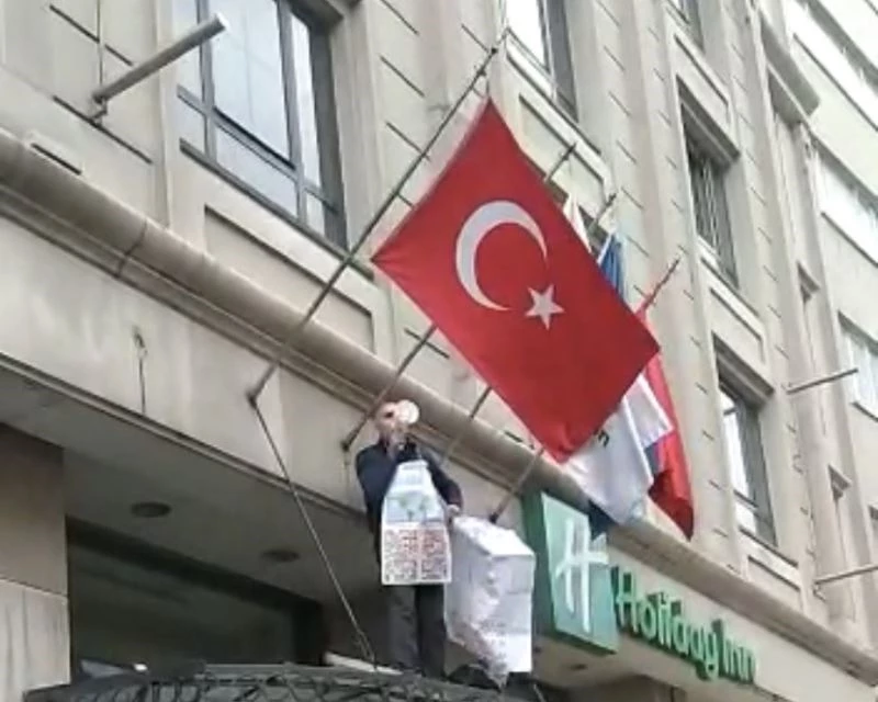 Şişli Halaskargazi Caddesi üzerinde psikolojik sorunları olduğu belirtilen şahıs, çalıştığı otelin giriş kapısına tırmanarak megafonla etrafa seslendi. Şahıs aşağıya inmeyince polis ekipleri tarafından merdivenle yanına çıkılarak alındı. Yaşananlar ise kameralara yansıdı.