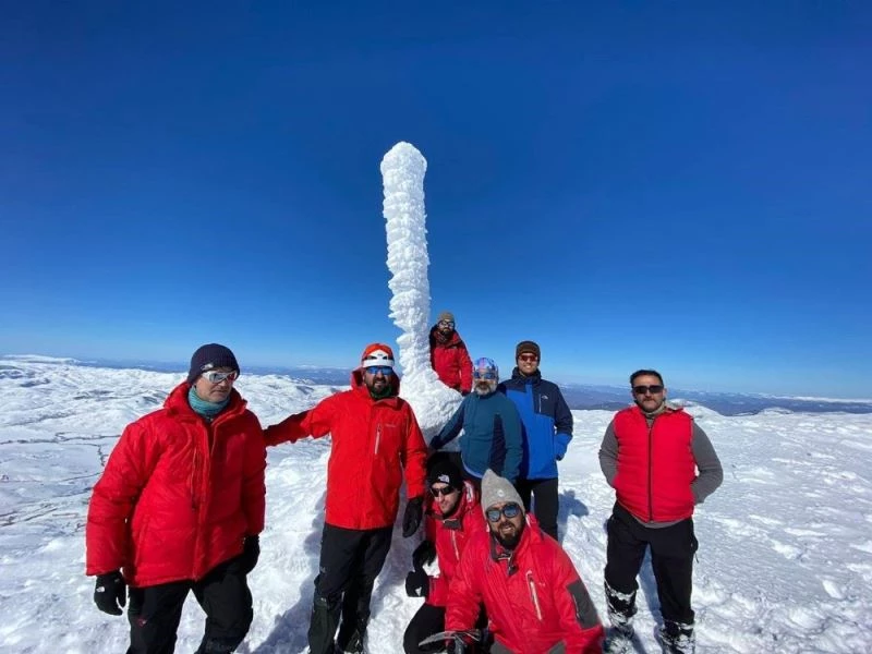 Sivas’ta valilikten aldıkları özel izinle Yıldız Dağı’na tırmanan dağcı grup, olumsuz hava koşulları nedeniyle parçalanan ve kar altında kalan Türk Bayrağını yenilediler
