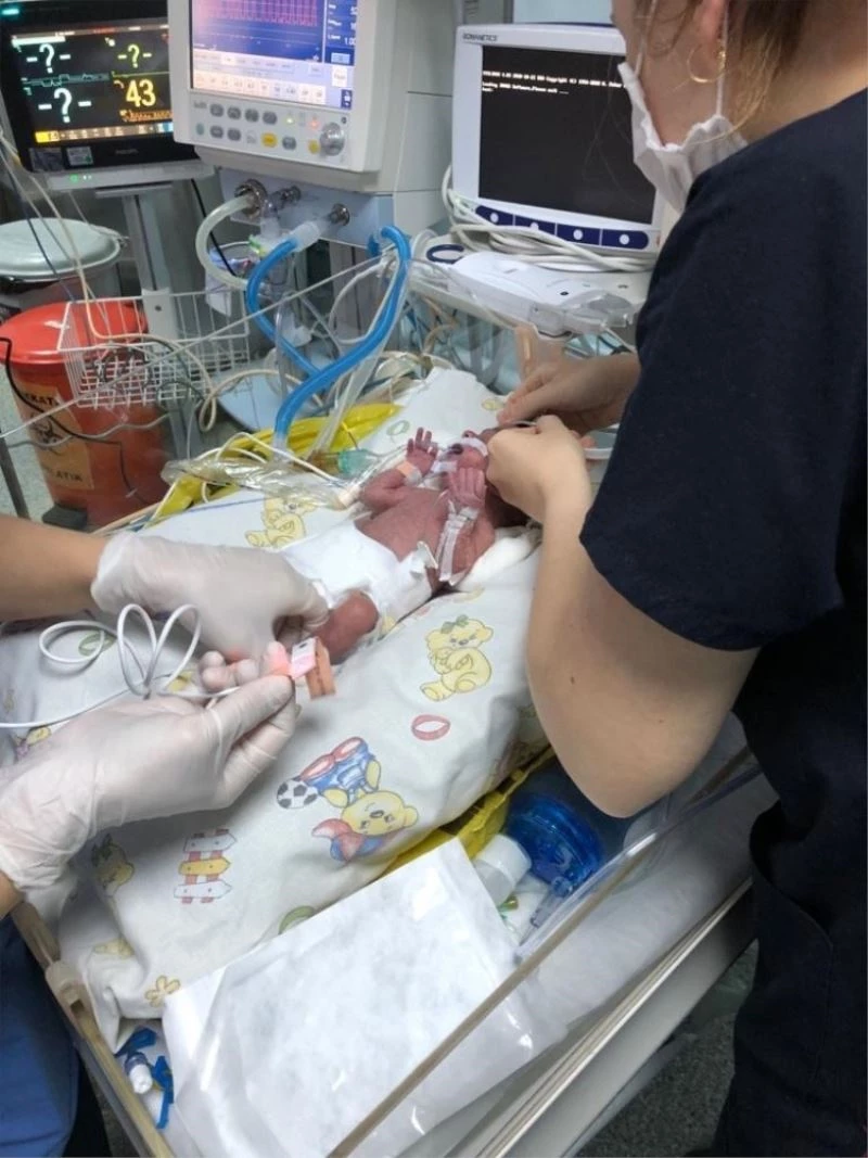 Prof. Dr. Cemil Taşcıoğlu Şehir Hastanesi’nin ilk kalp ameliyatını gerçekleştiren ve minik bebeğin tedavi sürecinin devam ettiğini Çocuk Kalp Cerrahı Prof. Dr. Ali Rıza Karacı, “Bebeğimiz 27 haftalıkken doğru, dokuz yüz gram ağırlığında bu hastalarda normalde kapanması gereken bir açıklık vardır. Bu damar açık kaldığı zaman hasta kalp yetmezliğine giriyor, solunum cihazına bağlı kalıyor. Biz ameliyatla oradaki açıklığı kapattık. Bu çocuğun ameliyatını gayet güzel şekilde yaptık, başarılı geçti. Bu çocuklar riskli oldukları için oldukları yerde ameliyatlarını yapıyoruz. Yoğun bakımda yatıyorlar genelde, yoğun bakımı ameliyathaneye dönüştürüyoruz. Çünkü ameliyathaneye transferleri daha riskli oluyor. Ameliyathane şartlarını yoğun bakımda oluşturduktan sonra burada ameliyatlarını yapıyoruz. Sonra yoğun bakımda kalmaya devam ediyor. Bundan sonra akciğerlerinin hızlı bir şekilde toparlanmasını bekliyoruz. İlerleyen birkaç hafta içinde de genellikle solunum cihazından ayrılıyorlar. Cemil Taşcıoğlu Hocamızın adının verildiği hastanenin ilk ameliyatı; küçük bir kalbin büyük bir ameliyatını yaptık. O nedenle bizde çok sevinçliyiz” dedi.