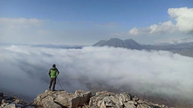 Bitlis’te bulunan Rahva Ovası ve Atatürk Dağı oluşan sis bulutu altında kartpostallık görüntüler oluşturuyor.