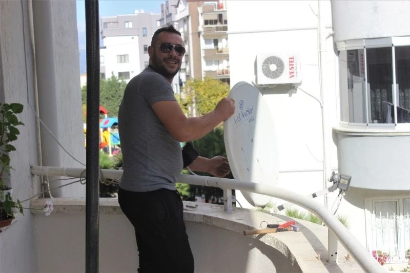 Bursa’da uydu alıcısı işiyle uğraşan genç, herkesin montla gezdiği soğuk havada tişört ve şortla geziyor.