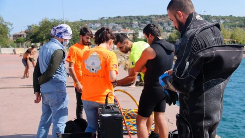 15 yıldır bu işi yapan Sanayi Dalgıcı Birkan Erdem, 11 tonluk bir gemi pervanesini karaya çekilmeden tamir ederken, bir yandan da İHA’nın su altı kamerasına el salladı. Ayrıca Maltepe Sahili’nden dalış yapan Erdem, iskele demirlerinin kalınlık ölçümünü ve çürüme olup olmadığını da kontrol etti. Oluşabilecek herhangi bir tehlikeli duruma karşı sürekli iletişim halinde olan Erdem’in o anları ise su altı kamerası ile görüntülendi.