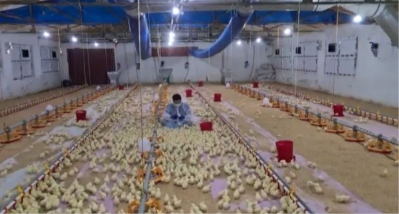 Bursa’da yumurtadan yeni çıkan binlerce civciv, görme yetileri yeterli olmadığı için yeme sesle yönlendiriliyor. Tek komutla binlerce civcivi etrafında toplayan CEO’nun görüntüleri sosyal medyada büyük ilgi görüyor.