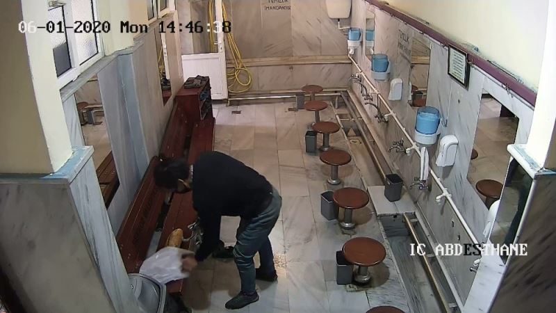 Hırsızlık anı güvenlik kameraları tarafından saniye saniye kaydedildi. Görüntülerde, şüpheli şahsın elinde ekmek poşetiyle abdesthaneye girdiği, önce muslukları kontrol ettiği, ardından musluğu ayağıyla kırarak poşetin içine koyduğu görülüyor. Kapıya doğru gidip etrafı kontrol eden şahsın, daha sonra diğer muslukları da aynı şekilde kırarak poşete koyduğu ve poşeti bağlayarak camiden ayrıldığı yer alıyor. Maske takan şüphelinin aynaya bakarak saçlarını düzeltmesi ve rahat tavırları ise dikkat çekiyor.