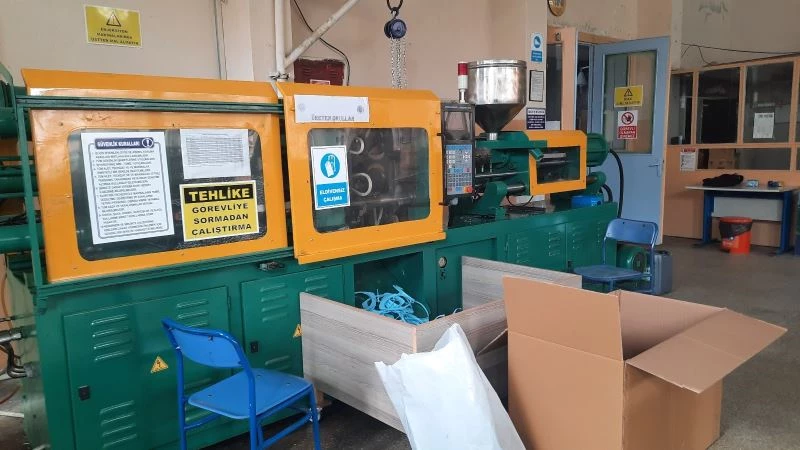 Pandeminin başından bu yana gönüllü olarak siperlik üretim faaliyetine katıldığını söyleyen okul öğrencisi Umut Can Alpı, “Son sınıftayım ve makine bölümündeyim. Makine atölyesinde pandemi süresince 1 yılı aşkın bir zamandır siperlik üretmekteyiz. Bu siperlikleri atık maddelerden yani atık plastiklerden yapmaktayız. Atık plastikleri farklı aşamalardan geçirip siperlik, mama kabı ve silgi üretmekteyiz” diye konuştu.