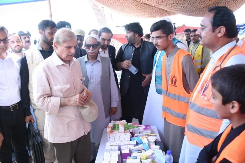 Pakistan Başbakanı Muhammed Şahbaz Şerif, binden fazla kişinin öldüğü sel bölgesini ziyaret ederek afetzedelere helikopterden yardım malzemesi dağıttı.