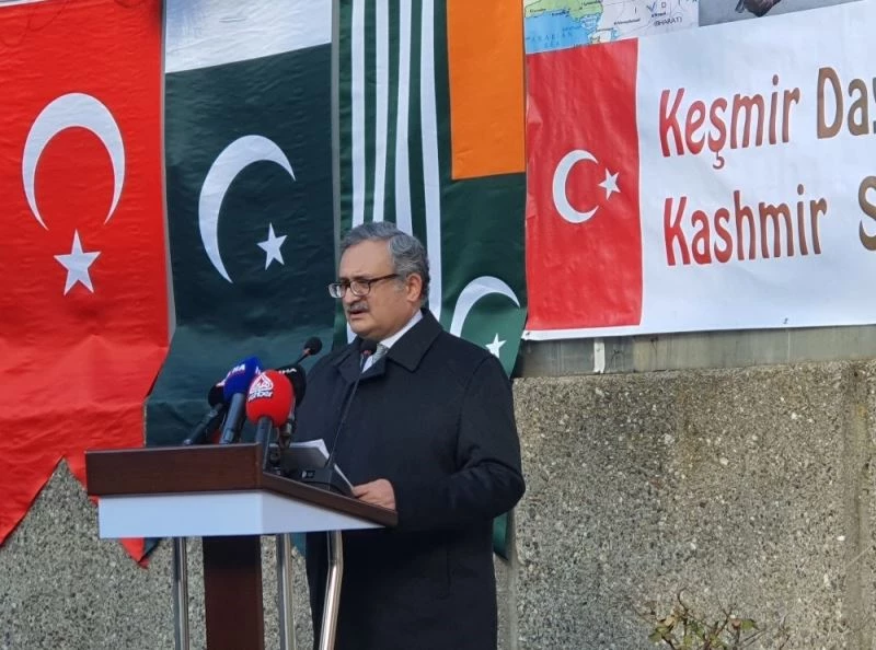Törene Pakistan’ın Ankara Büyükelçisi M. Syrus Sajjad Qazi, AK Parti Trabzon Milletvekili Muhammet Balta, Ankara’daki Pakistan Büyükelçiliği çalışanları ve Pakistan topluluğu üyeleri katıldı. Törende konuşan Büyükelçi Qazi, bugünün Keşmir halkına verilen tutarsız vaatlerin ve yerine getirilmemiş taahhütlerin sert bir hatırlatıcısı olduğunu belirterek, “Bugün, Hindistan’ın Keşmir halkına referandum için verdiği sözler ve Hindistan’ın meseleyi Ocak 1948’de BM’ye ilk kez götürüp çözümünü kabul ettiği, uluslararası toplum önünde üstlendiği taahhütlerin günüdür. Ne yazık ki o zamandan beri yasa dışı Hint işgali altındaki Jammu ve Keşmir’de (IIOJK) Keşmirlilerin bu hakkını inkar etmek için her türlü siyasi, diplomatik, askeri, ekonomik, parlamento, anayasal ve demografik hokkabazlık ve zorlama kullanıldı. Bugün, Hindistan’ın IIOJK’daki çabalarının boşuna olduğunu da hatırlatıyor. Hint işgal güçleri Keşmirlilerin sesini boğmaya çalıştıklarında sefil bir şekilde başarısız oldular. Keşmirlilerin direnci sarsılmaz olmaya devam ediyor. Kendi kaderlerini tayin hakları için mücadeleye devam ediyorlar” ifadelerini kullandı.