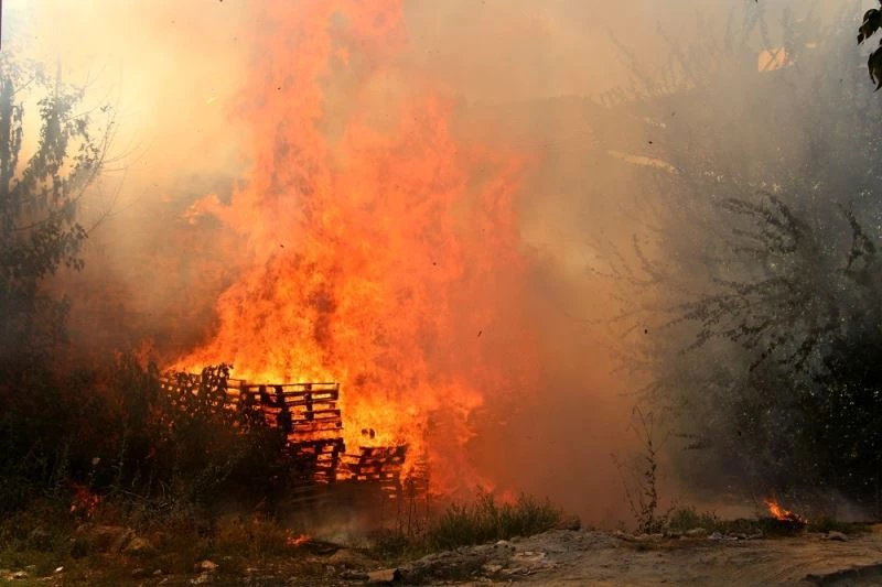 Manisa’nın Kula ilçesinde boş bir arsadaki üst üste yığılmış paletlerden çıkan yangın, boş bir deponun çatısına da sıçradı. Çevredeki iş yeri ve evlere sıçramadan kontrol altına alınan yangında soğutma çalışmalı sürüyor.