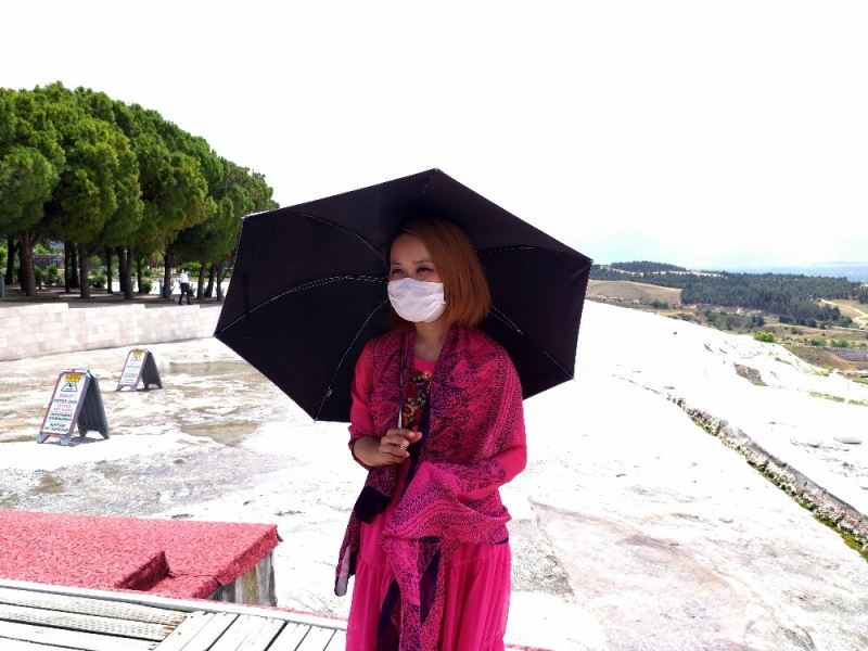 Çin’den Pamukkale’yi görmeye gelen Çinli turist, korona virüs tedbirleri kapsamında uçak seferleri durunca yaklaşık 3 aydır Türkiye’nin değişik yerlerinde kaldı. Çinli turist normalleşme sürecinin başlaması ile ülkesine dönecek olmanın mutluluğunu yaşıyor.