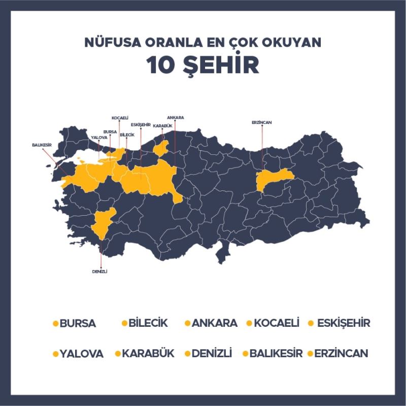 Pandemi dönemine ilişkin ortaya çıkan bir diğer veri ise en çok kitap siparişi verilen illerin İstanbul, Ankara, Bursa, İzmir, Kocaeli, Antalya, Mersin, Konya, Adana, Kayseri şeklinde sıralandı. Nüfusa göre en çok kitapseverin bulunduğu iller ise sırasıyla Bursa, Bilecik, Ankara, Kocaeli, Eskişehir, Yalova, Karabük, Denizli, Balıkesir ve Erzincan oldu.