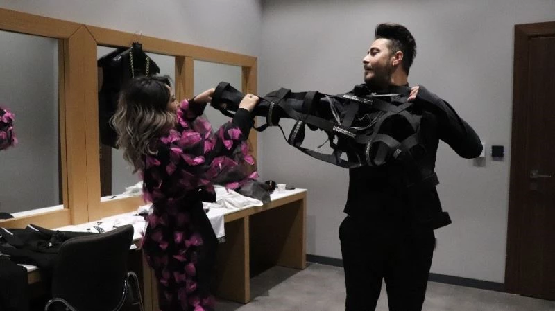 “Üzerinde bulunan kıyafeti de Denizli’de ki ve birçok sanat dünyasında ki insanların sahneye çıkarken ben özenli olmasını istiyorum. Bir star gibi olmasını istiyorum çünkü bir topluma hitap ediyorlar ve bir sanat yapıyorlar. Ondan burada da özenerek parlak bir görüntü verelim ama solist ön planda olduğundan, smokin üzerinden bir tasarım yapalım diye böyle bir şeyle başlattık. Bugün toplamda 5 kostüm giyecek ve hepsinin farklı hikayesi var” diye konuştu.