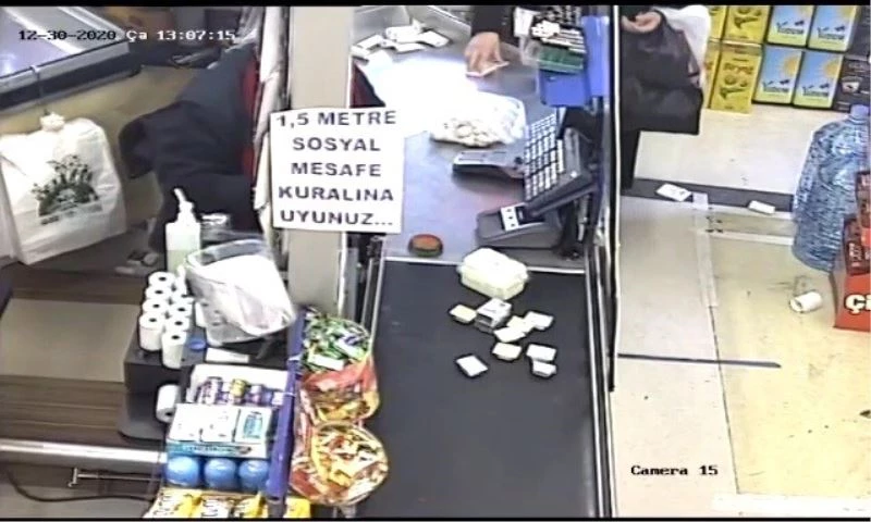 Karabük’te bir markette alışveriş yapan müşterinin artan para üstünü alan yaşlı kadın güvenlik kamerasına yakalandı.