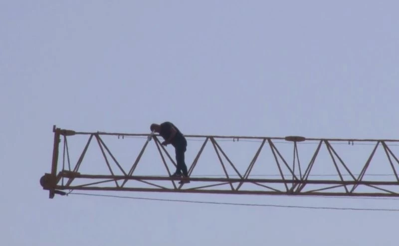 Parasını alamayınca vincin üzerine çıkıp intihara kalkıştı