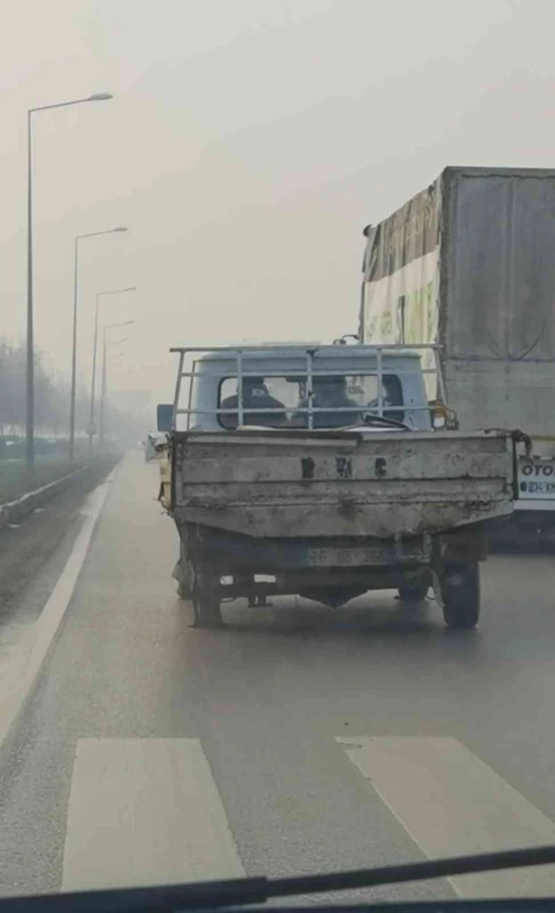 Olay, Alanyurt yolu üzerinde meydana geldi. Alanyurt’tan İnegöl’e seyir hâlinde olan 16 UB 365 plakalı kamyonetin sürücüsü, arka lâstiği patlak olan kamyonetiyle kilometrelerce seyretti. Herhangi bir kazanın olmaması sevindirdi. O ânlar amatör kameraya yansıdı.