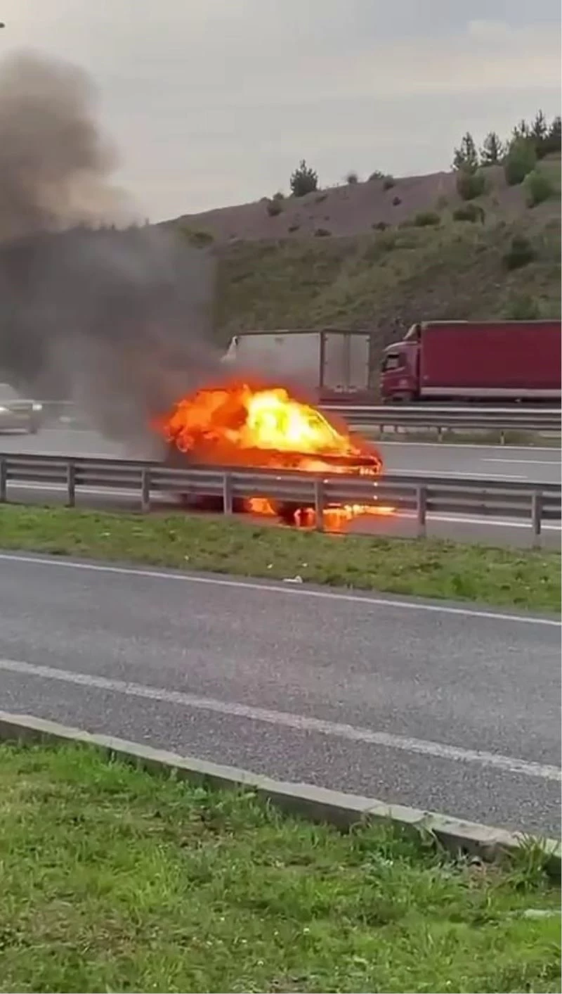 Kuzey Marmara Otoyolu Sakarya geçişinde alev alev yanan cip paniğe sebep oldu. Vatandaş kamerasına yansıyan görüntüde, yangın anını kaydan alan kişinin, "Cayır cayır yanıyor, patlamasını bekliyoruz" dediği duyuldu.
